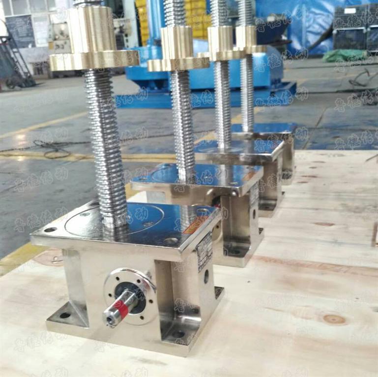 絲桿升降機的安裝需要有足夠的空間能夠上下、左右自由活動,對于一些比較狹小的空間可以選擇螺母運動結構型式,升降機安裝固定后由螺桿上螺母作軸向運動來完成物體的上升、下降、翻轉等。升降機工作環境溫度應控制在-15°C到80°C,在零攝氏度以下工作時因受潤滑油粘性變化的影響使得整機效率下降,所以_選用充足的驅動源。螺旋升降機根據負載不同所需扭矩、轉速、功率等也不同,使用時要根據實際情況進行效驗,避免_負荷使用對升降機造成重大損傷。具體選型搭配可咨詢我公司技術人員。在室外或灰塵較多的環境中使用可配備防塵罩等附件來保護絲杠。