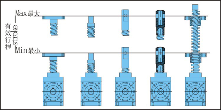 絲桿升降機-蝸輪絲桿升降機行程、總長關系-魯德傳動
