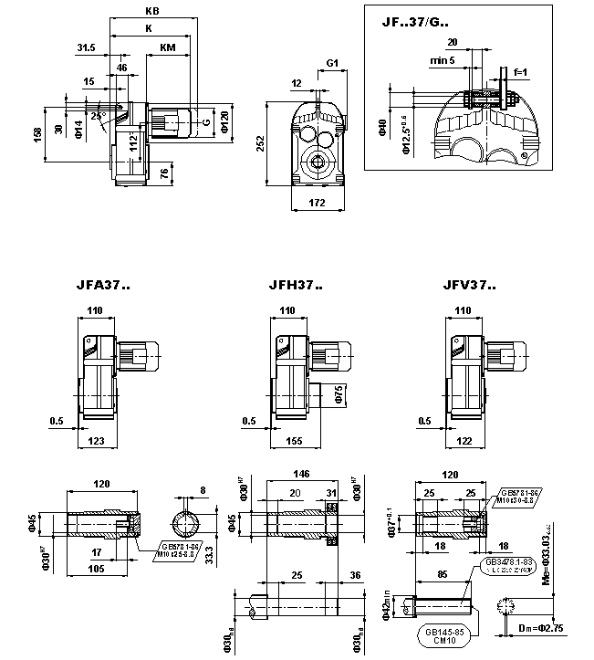 外形安裝尺寸(F37、FA37B、FH37B、FV37B、FF37、FAF37B、FHF37B、FVF37B、F..37/G、FA37、FH37、FV37、FAZ37、FHZ37、HVZ37)