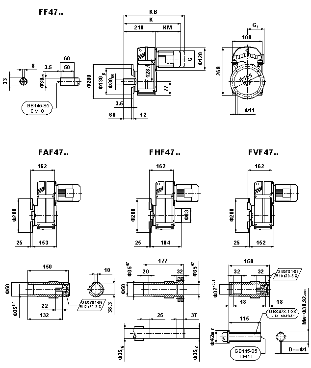 外形安裝尺寸(F47、FA47B、FH47B、FV47B、FF47、FAF47B、FHF47B、FVF47B、F..47/G、FA47、FH47、FV47、FAZ47、FHZ47、HVZ47)