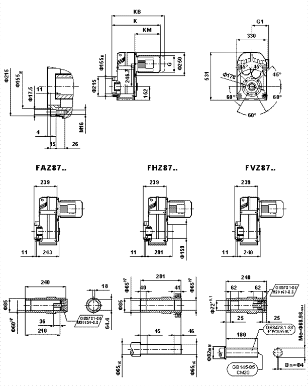 F系列減速機,F系列斜齒輪減速機,F系列傘輪減速機;外形安裝尺寸(F87、FA87B、FH87B、FV87B、FF87、FAF87B、FHF87B、FVF87B、F..87/G、FA87、FH87、FV87、FAZ87、FHZ87、HVZ87)