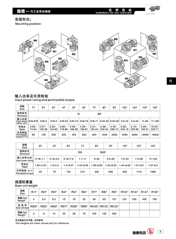 速比范圍:R基本型3.33~289.74,RX型1.3~8.65,R/R組合型可達(dá)到27001
