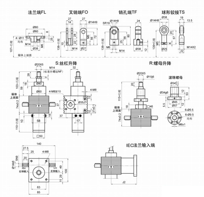 絲桿升降機-SJB10螺旋滾珠絲桿升降機外型尺寸-魯德傳動