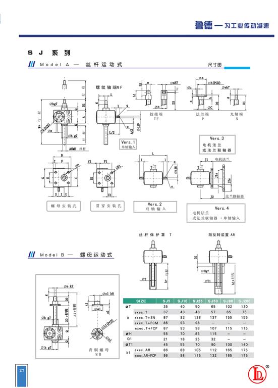 系列中體積較小的一種,殼體采用鑄鋼方形殼體,六面磨制,輸入型式、安裝方式多樣化,適合多種工況使用。_小負載0.5T,推桿線速可至30mm/s,輸入速度_為1500rpm。
