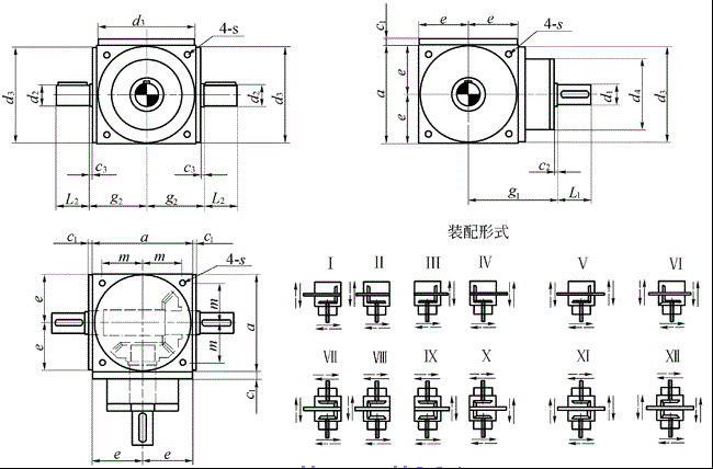 注: a、軸d2可作為輸入端,此時(shí),SPL型換向器在許用速度范圍內(nèi)可作增速傳動(dòng) b、如果數(shù)只換向器串連使用,建議_SPV型 c、訂貨時(shí),請(qǐng)指明地腳螺紋孔位置 |
