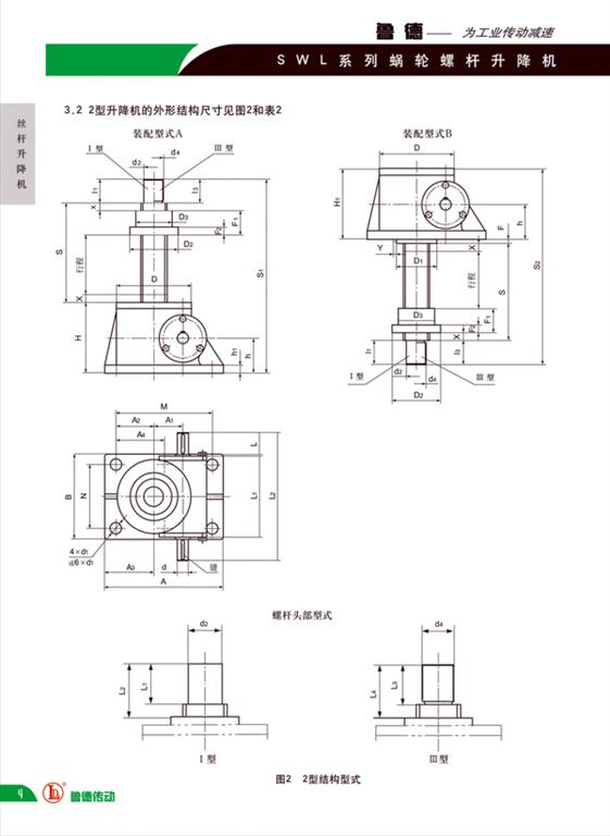 2型機構形式的絲桿頭部分為型I(圓柱型)、III型(螺紋型)二種形式。