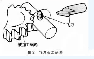 飛刀相當于蝸輪滾刀的一個刀齒。飛刀切齒只能采用切向進給法,在滾齒機上可使飛刀轉一周蝸輪轉Z1個齒,再加上飛刀的切向進給與工作臺的附加轉動,也能按展成法原理切出正確的齒形。