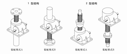 轉配型式:1型結構型式分為A型:螺桿工作端在上;