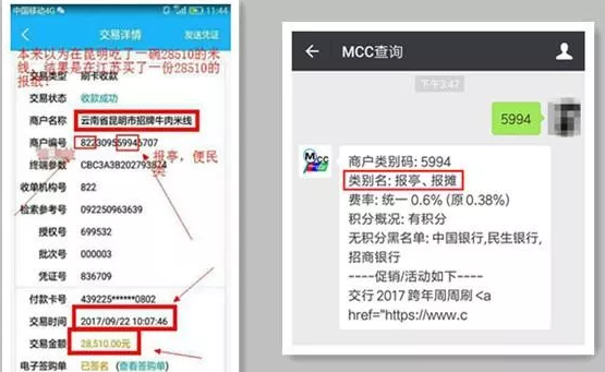 2、要能智能匹配商戶,這樣才可以確保卡友的每次刷的商戶不會(huì)重復(fù),而且能夠自由控制商戶和刷卡金額相符,不然就會(huì)出現(xiàn)像上面這樣尷尬場(chǎng)面,在一家米線店消費(fèi)了30000元,請(qǐng)問(wèn)你吃的是什么米線啊!但其實(shí)這是買(mǎi)一份報(bào)紙花了30000元,這是要買(mǎi)下整個(gè)報(bào)亭的節(jié)奏。銀行也不是傻子,這樣是提不了額的,甚至有降額封卡的風(fēng)險(xiǎn)!