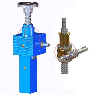 說起安全螺母,可能大多數人不知道,在國外, 都會有安全螺母,而國內的產品,因造價或者安裝空間的原因,都沒有設計這一裝置,但是安全螺母是非常必要的一個部件。它的原理很簡單:絲桿上下運動時,如果稍微有點側向力,便會使得絲桿和蝸輪的內螺紋有較大的摩擦,久而久之內螺紋會被磨壞,絲桿會從中脫落,絲桿上的設備也會因此落下,而在絲桿上端再套一個螺紋連接的螺母,可避免這一事故發生,蝸輪內螺紋損壞,絲桿也不會因此掉下來,利益不受損失,也不會傷到人員。這樣一舉兩得的裝置,大家都可以考慮加上。成本上并沒有高很多,為您帶來的安全性卻是百分百。