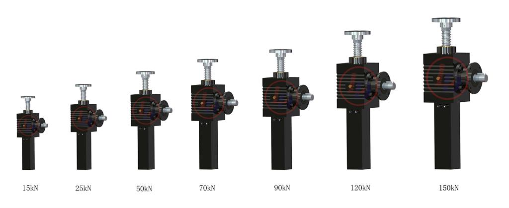 錐齒輪絲桿升降機分為錐齒輪梯形絲桿升降機,錐齒輪滾珠絲桿升降機,主要特點為使用效率高,容易調整減速比,同時具有安裝使用方便,體積小、重量輕,動力源廣泛,無噪音,功能多,可靠性高等特點。錐齒輪絲桿升降機具有自鎖功能,能按程序準確的控制調整提升或推進高度。結構型式多樣,提升高度可根據用戶要求制造。